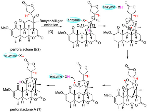图2 Perforalactone A 可能的生源合成途径