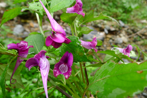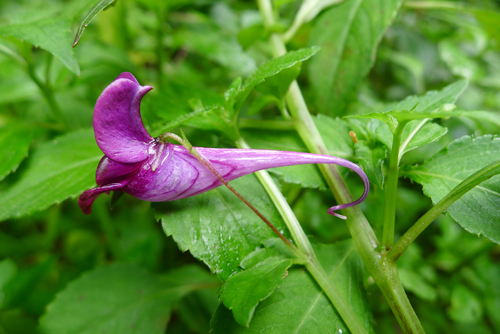 近日,笔者在桂东县沤江镇竹坑村中竹坑组一个人烟稀少的溪涧发现了一种奇异的野生花卉。该种花卉草本、簇生,植株高约30厘米,花茎脆嫩,叶片呈锯齿状对生,夏日开花,有紫红、黄、白三种,花朵一端有根卷须,花身上有不规则的花纹,柔嫩细长的花柄仿佛一根丝线似的穿插在绿叶下面。此花被当地村民们称为“水网花”,但一番咨询得知,她的学名是“龙虾花”。早在一亿年前的中生代白垩纪时期,龙虾花就在地球上逢勃地生长着。后来,第四纪大陆冰川的活动,使得大部分地区的龙虾花灭绝了,因此龙虾花有“植物活化石”之称。龙虾花在桂东尚属首次发现,填补了该县没有草本“植物活化石”的空白。