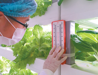 植物工厂的工作人员在生产车间内调试温度。张 素摄