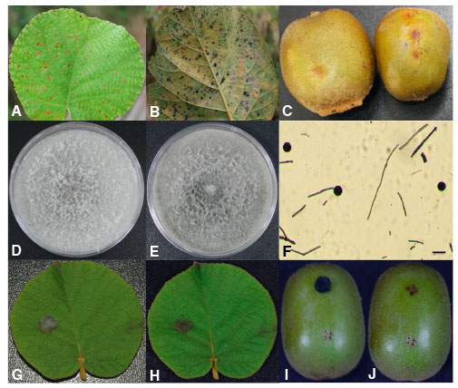 猕猴桃果实营养丰富,富含维生素和多种矿质元素及氨基酸,被誉为“水果之王”,是我国山区农民精准脱贫的特色优势树种。至2015年,中国猕猴桃已经形成栽培面积、产量和产值分别超过25万公顷、250万吨和250亿元的规模,居世界首位。近年来,随着种植规模的逐年扩大,猕猴桃叶部病害的问题日益严重,常见病害包括褐斑病、灰斑病、黑斑病、炭疽病及灰霉病等,各产区均有发生,该类病害主要危害猕猴桃叶片、枝条和果实,严重时会容易导致叶片早落,果实商品价值降低。病害流行年份,成年果园病叶率可达50%-100%,严重制约猕猴桃产业的发展。
