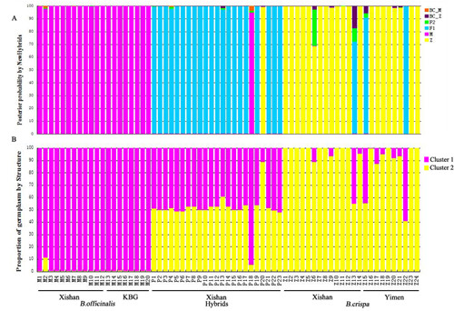 图2 基于低拷贝核基因和ITS的Newhybrid和Structure群体指派分析结果