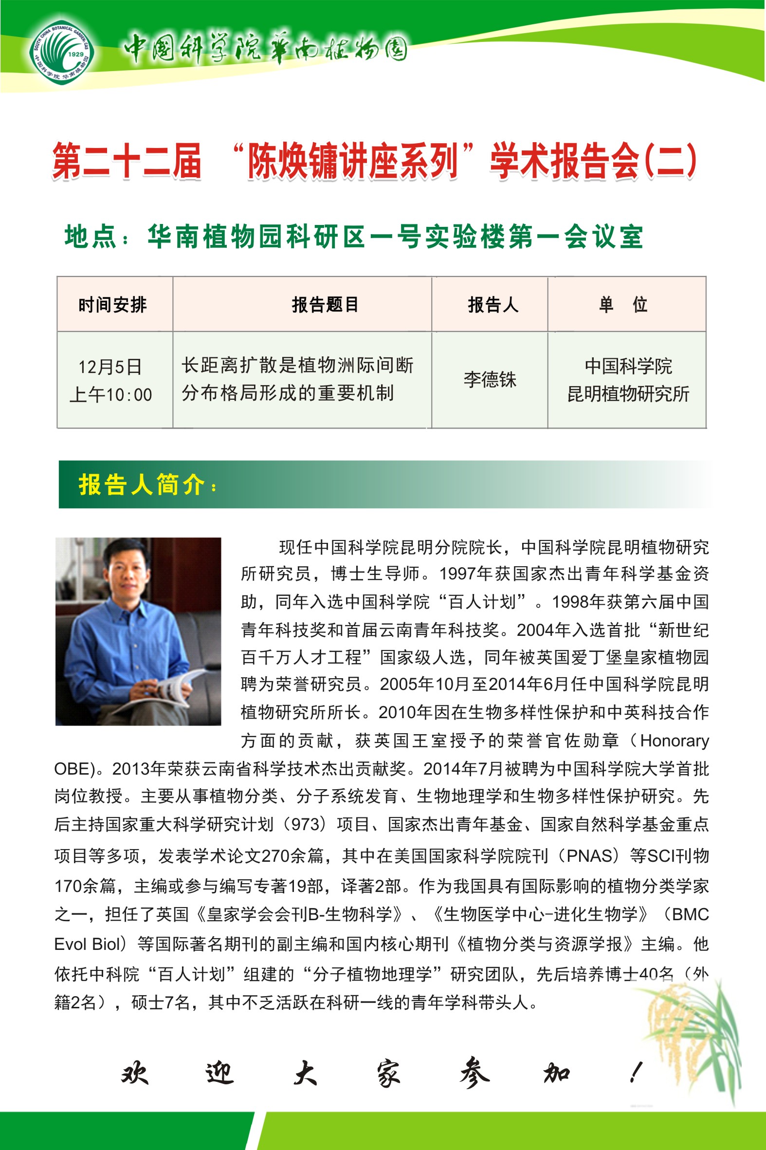 第二十二届 “陈焕镛讲座系列”学术报告会(二)