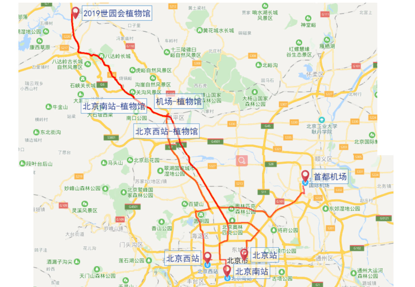 北京南站-延庆:地铁4号线(北京南站上,西直门下)-地铁2号线(西直门上,德胜门下)-919快(德胜门上,延庆东关下);